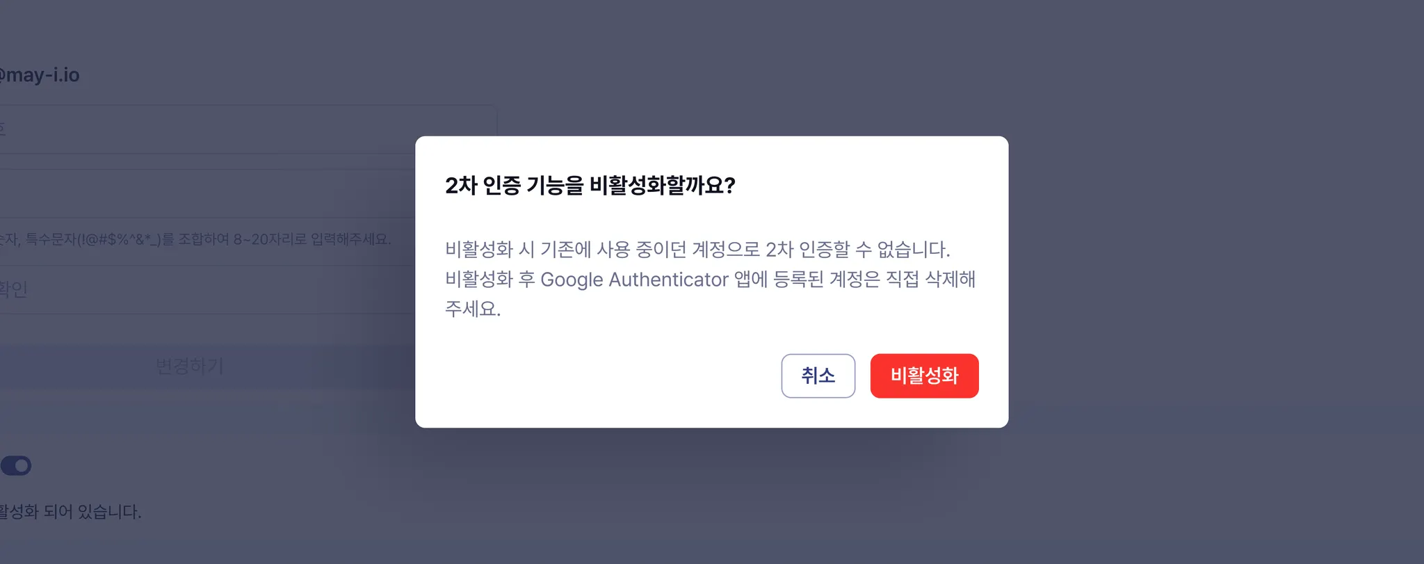 토글이 꺼졌다면, 2차 인증 비활성화가 완료된 것입니다.