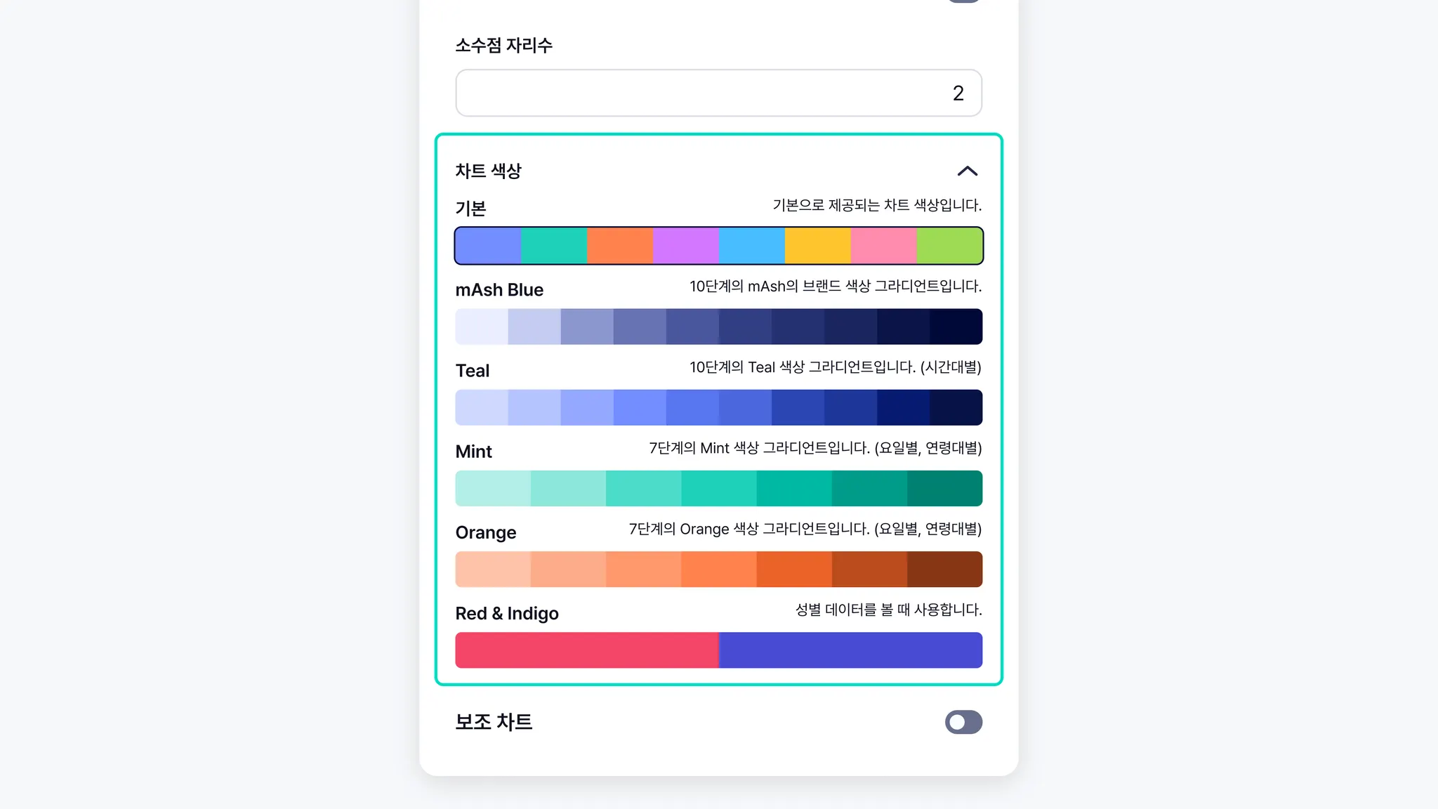 강조하고자하는 데이터에 따라 원하는 차트 색상을 설정할 수 있습니다.