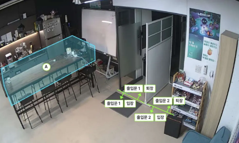 이렇게 추적된 방문객이 매장 내에 설정된 가상의 제품 구역에 체류하거나, 라인을 통과하는지 여부를 검출해내어 매장 내 방문객의 행동을 집계합니다.