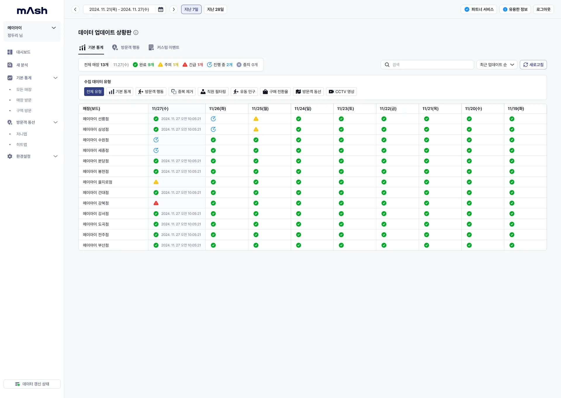 이 문서에서는 매쉬보드의 페이지별 기능을 안내합니다.