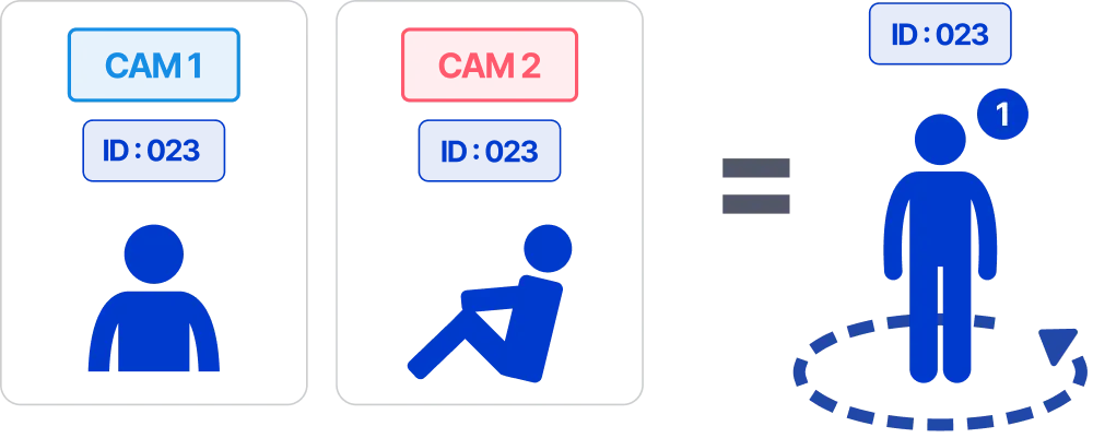 여러 대의 CCTV에 나타난 동일인을 식별하여, 방문객 개개인의 매장 내 동선을 파악할 수 있습니다.