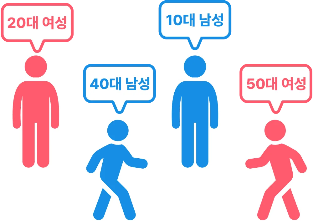 *안면 인식이 아닌, 인물 전체 이미지를 고려하여 성별 및 연령대를 추론합니다.