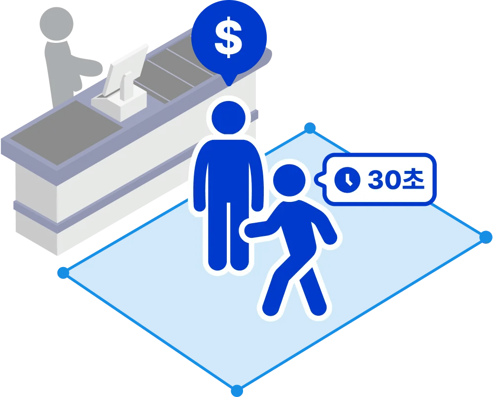 구역 내에 특정 시간(ex. 30초) 이상 머무른 방문객들의 수를 확인할 수도 있습니다.