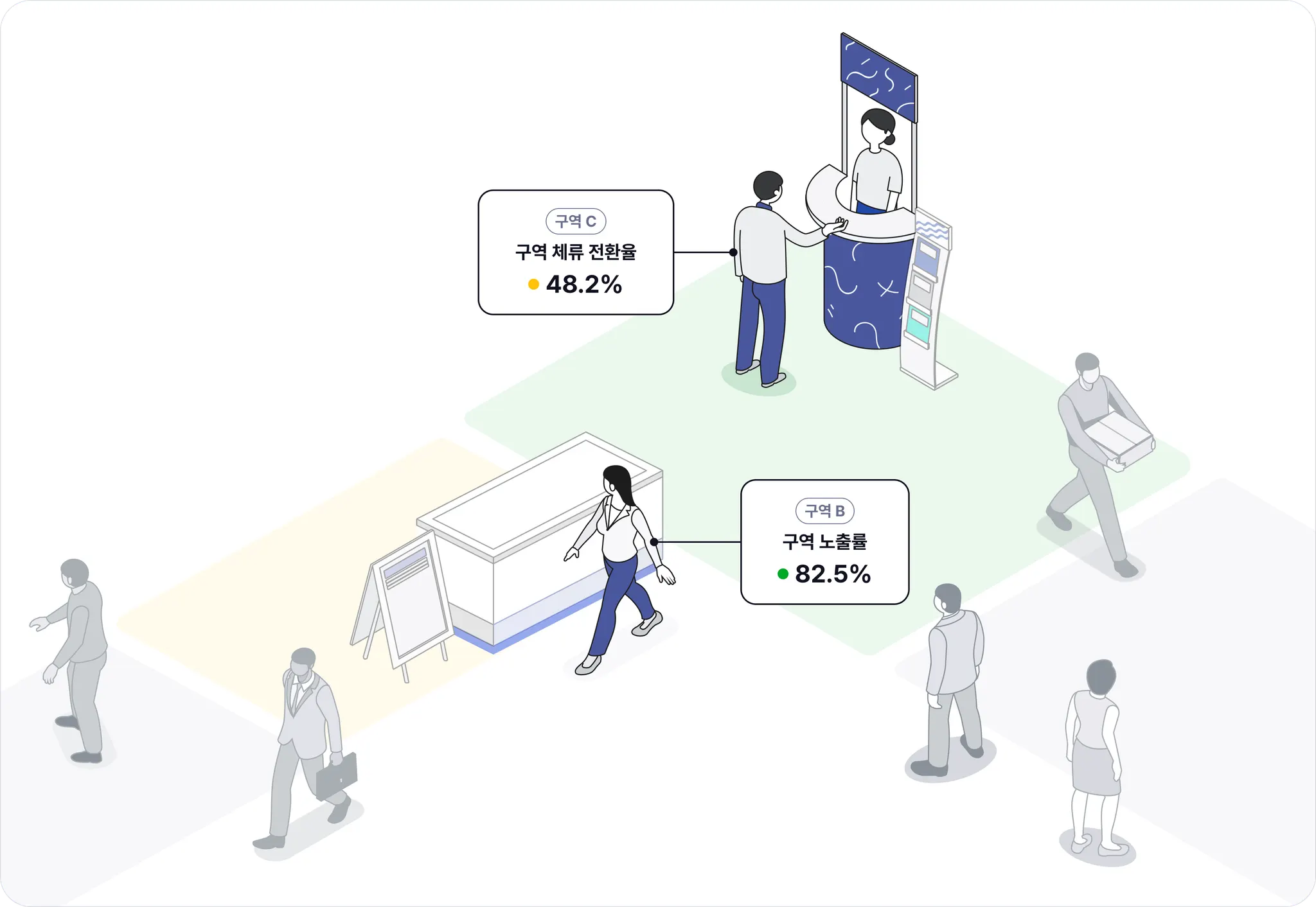 구역 체류 전환율이 높은 구역은 방문객이 해당 구역의 상품이나 콘텐츠에 높은 관심을 보이고, 해당 구역에서 시간을 보내고자 한다는 것을 의미합니다.