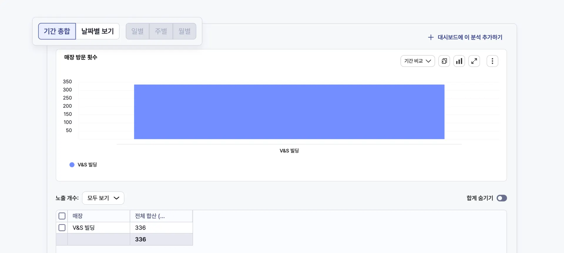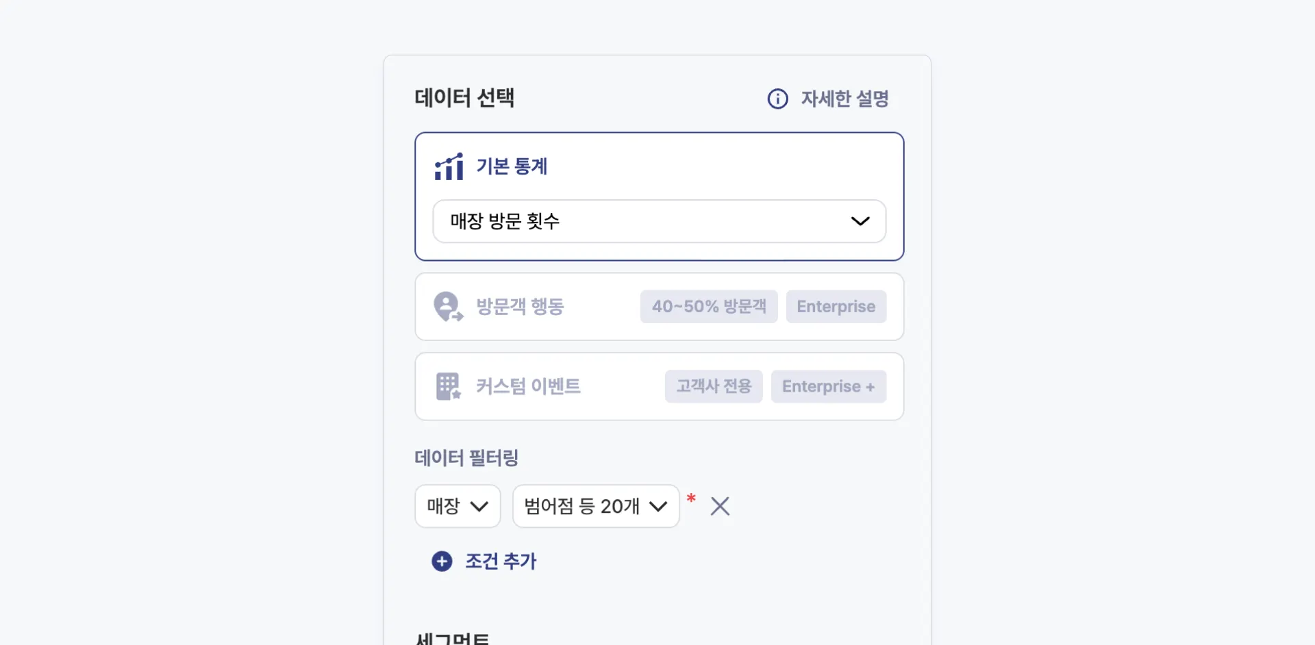 원하는 데이터를 선택하고, 방문객들을 세그먼트별로 나누어 그래프와 표를 통해 비교할 수 있습니다.