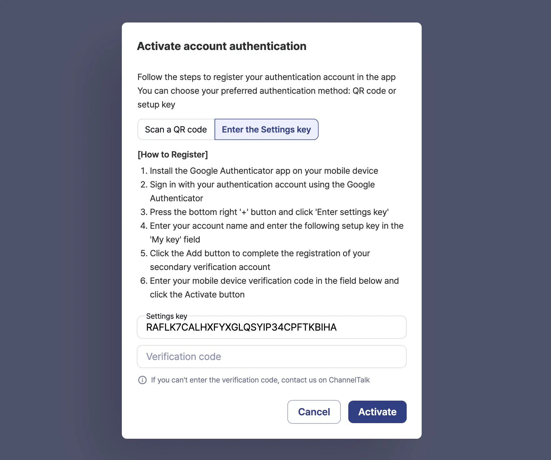 After access permission is approved, you need to activate Multi-Factor Authentication to browse the dashboard.