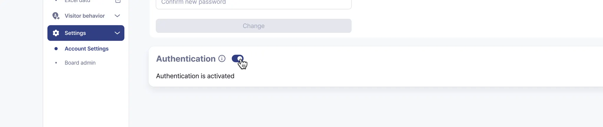 Go to the menu on the left side of the dashboard - Settings - Personal Settings, then click the toggle for Authentication.