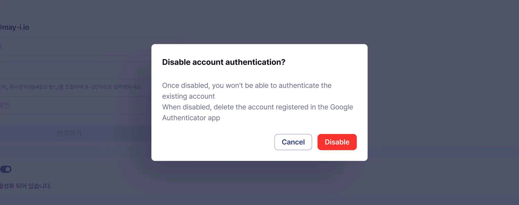 Open the Google Authenticator app and enter the authentication code displayed on the screen into the input field.
