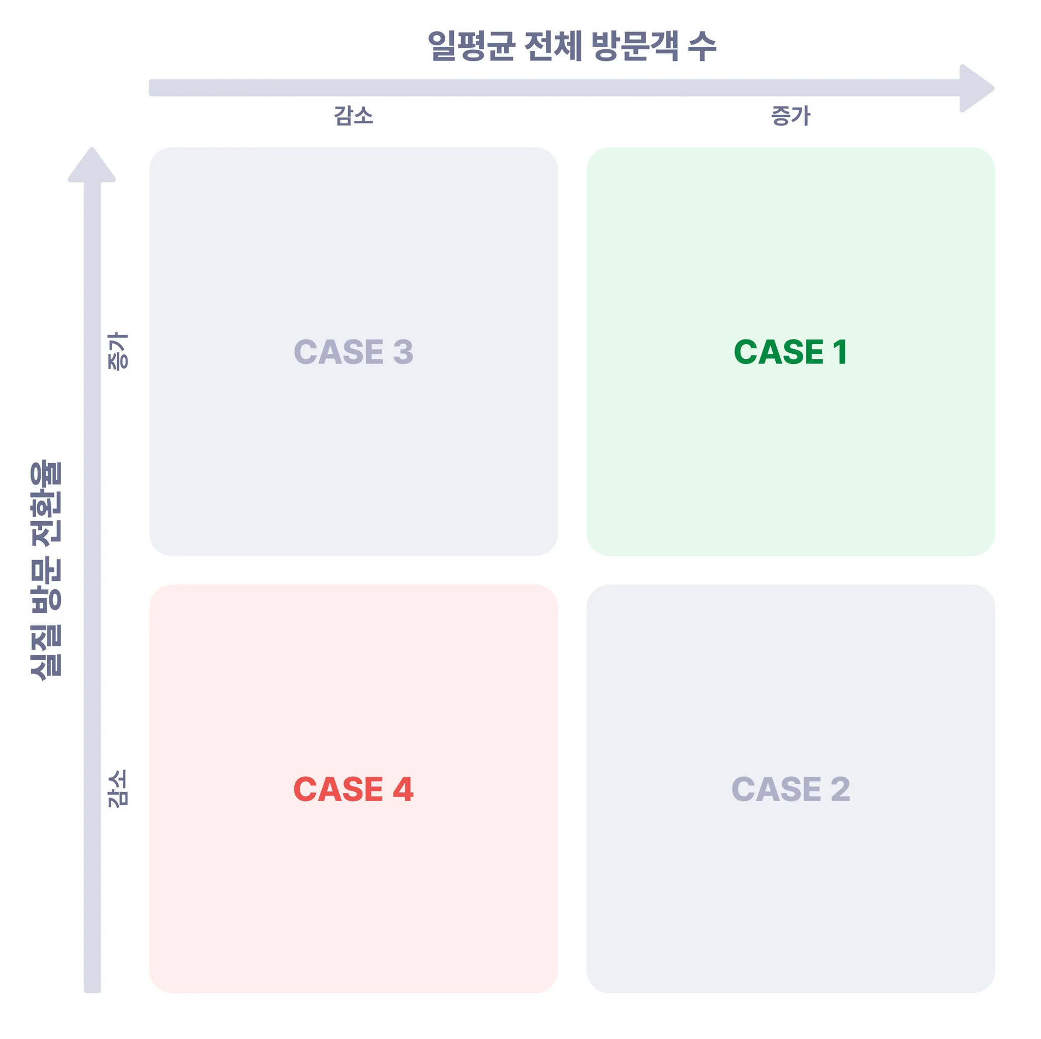 CASE 3. 일평균 전체 방문객 수 감소 & 실질 방문 전환율 증가