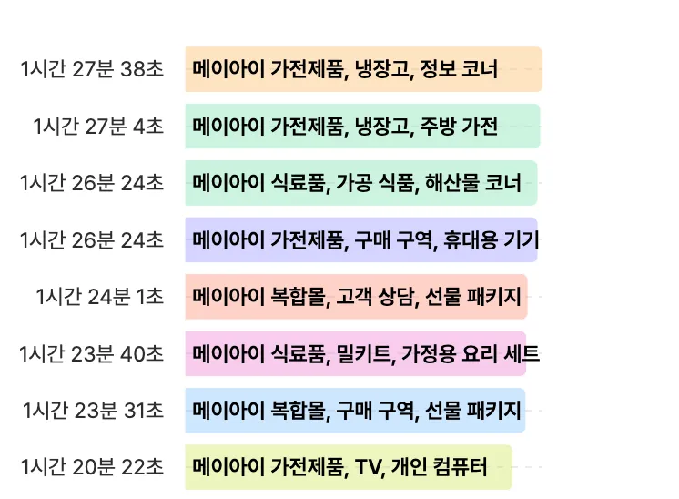 ⇒ ‘행사 효과 측정’ 템플릿과 함께 활용하면 행사에 참여한 방문객들이 기획 의도대로 매장 내 구역에 관심을 가졌는지를 추론해 볼 수 있습니다.